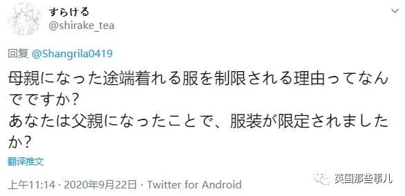 “成为母亲后,就连怎么穿衣服都要被限制,这是为什么?难道你成为父亲后,有人限制过你的衣着打扮吗?”