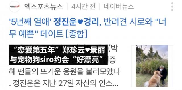 28日早上一则题为《“恋爱第五年”郑珍云、景丽与宠物狗siro约会“好漂亮”》的报道登上了韩网热搜,引起了大众的关注。那么这是怎么一回事呢?